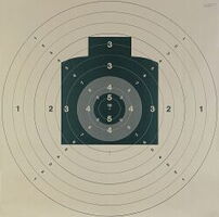 6 Schuss Einzelfeuer auf Scheibe B4 in je 60 Sekunden einzeln gezeigt