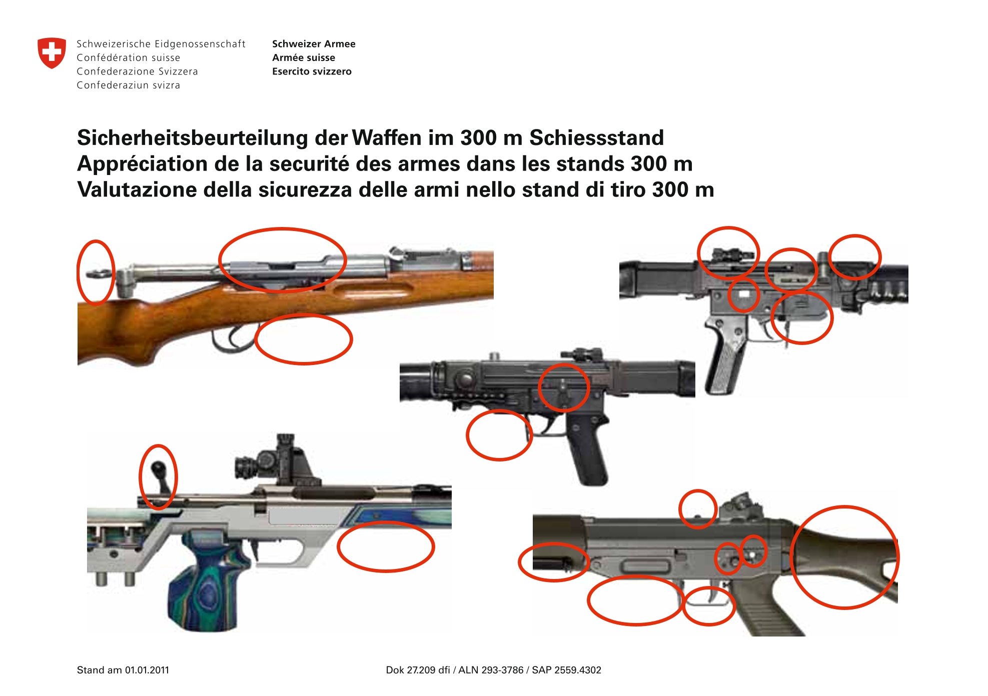 Vor dem Betreten des Schiessstandes und nach dem Schiessen sind die Waffen in folgenden Zustand zu bringen: